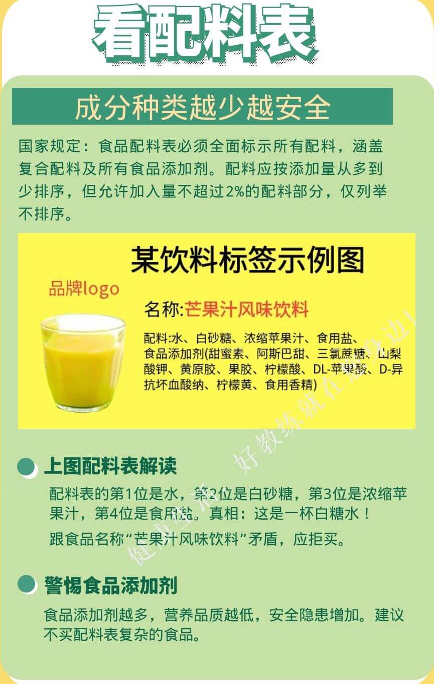 配料表揭示了該食品的成分及其含量順序,包括主要成分、添加劑、糖、鹽含量,以及過(guò)敏原信息。成分種類越少,通常越安全。